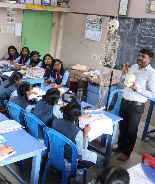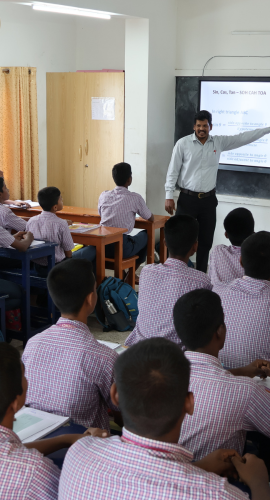 From Grade IX onwards, students follow a structured and exam-oriented Tamil Nadu State Board curriculum, supported by advanced mentoring, competitive exam preparation and personalised academic guidance.
